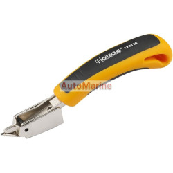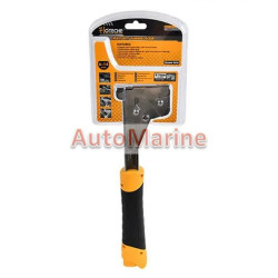 Hoteche Heavy Duty Staple Hammer TackerSuitable for insulation, house wrap, roofing, wiring, carpeting, upholstery, hobby and crafting, and more. Rugged alloy steel construction with Chromed finish Comfortable rubber grip Convenient bottom loading for quick and easy jam clearing Retractable striking edge One hand operation Compatible with 1/4" - 9/16"...